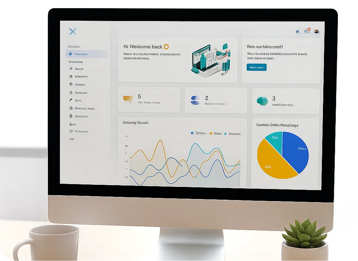 The MCS Dashboard, developed using React for the frontend and Node.js for the backend, provides a clean and intuitive overview of the platform’s key metrics. Designed for efficiency, it displays active orders, user statistics, completed tasks, and visual insights like ordering trends and order distribution. With quick access to management tools like orders, invoices, customers, and edits, the dashboard ensures that admins can monitor and control operations seamlessly from a single, organized interface.